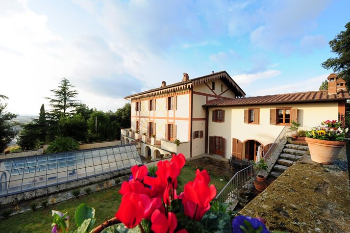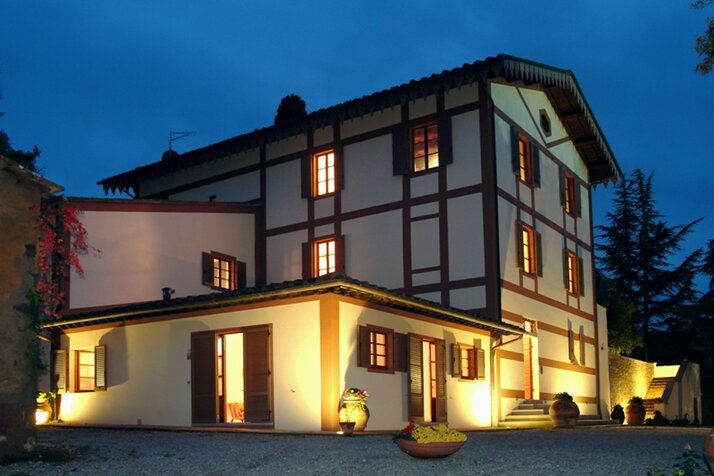 Villa dating back 1800, belonging to an ancient noble Family (Rossi-Mattei) of Arezzo. The villa is today an elegant holiday Relais, situated on the archaeological hill of Castelsecco, one km from the city center of the historical city of Arezzo, surrounded by green in a beautiful historical park.